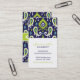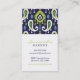 Niedliche, trendige Visitenkarten-Design mit modernem ikat-paisley-Muster. Fügen Sie Ihren Firmennamen und Ihre Kontaktinformationen für ein vollständig individuelles Business- oder CallingCard-Design hinzu. Mehr Platz auf der Rückseite für Ihre Facebook-Seite oder zusätzlicher Text in einem kontrastierenden farbigen Band. Klicken Sie auf die Schaltfläche Anpassen!, um Schriftart und Farben zu ändern und das Design weiter zu personalisieren!