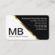 Klassische berufliche Baukarten mit markierten Namensinitialen in fett gedruckter Typografie, mit aufgeführtem Beruf oder Jobtitel und Firmennamen mit Kontaktdaten. Enthält eine elegante goldfarbene Trennlinie und Unternehmensinformationen, die Sie personalisieren können.