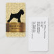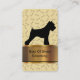 Klassische und einzigartige Visitenkarten für die Haustierpflege in starkem vertikalem Design mit goldbedrucktem Namensemblem, Hundeknochen und einem Schnauzer-stehende. Organisieren Sie Ihre Kontakt- und Firmeninformationen auf der zweiten Seite mit zwei Seitendrucken inklusive. Beste Visitenkarten für Themen rund um Hundepflege, Tierpflege oder einen Heimtiersalon auf unserem hochwertigen, abgerundeten Ecke Visitenkartenbestand.