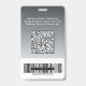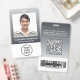 Verbessern Sie das professionelle Image Ihres Teams mit diesem modernen Mitarbeiterfoto-Ausweis, der für Klarheit, Funktionalität und ein schlankes Corporate-Design konzipiert ist. Das saubere Layout verfügt über einen dezenten hell-dunkel-grauen Farbverlauf, der die Lesbarkeit verbessert und gleichzeitig eine polierte, minimalistische Ästhetik beibehält. Die Vorderseite zeigt prominent das Mitarbeiterfoto, den Namen und die Position, um eine schnelle Identifizierung in jedem Arbeitsumfeld zu gewährleisten. Die Rückseite verfügt über einen großen, scannbaren QR-Code, der eine nahtlose digitale Integration ermöglicht - ideal für kontaktlose Check-ins, Mitarbeiterüberprüfung, Zugangskontrolle oder Verknüpfung mit Unternehmensressourcen. Zusätzlicher Platz ist für Ausweisnummern, Zugriffsberechtigungen oder Rückgabeinformationen vorgesehen, zusammen mit einem optionalen Barcode für zusätzliche Funktionalität. Perfekt für Corporate Offices und Geschäftsteams, Gesundheits- und Verwaltungspersonal, Einzelhandelsmitarbeiter und kundenorientierte Rollen sowie Konferenzen