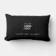 Stilvoll, klassisch, schwarz. Personalisieren und fügen Sie Ihr Unternehmen, Firmenlogo und einen Text. Weiße Buchstaben. Wenn Sie das Kissen ohne Text gewollt haben, löschen Sie mit Ihrem Backspace-Schlüssel. Ideal für Hotellobbys, Miet-Immobilien, Yachtservice und Mieten.
