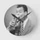 Geschäftsmann-trinkendes Bier Runde Wanduhr