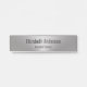Dieses moderne Bürotür-Schild hat einen bürstenbehafteten Metall-Look. (Der Look ist Kunstwerk, nicht Folie.) Es gibt zwei Zeilen dunkelgrauem Darstellungstext, die Sie bearbeiten können, um den richtigen Namen und den beruflichen Titel anzuzeigen.