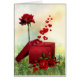 Rote Geschenkboxen, rote Rose, rote Herzen kommen aus der Geschenkboxen und ein Geschenk der Liebe Grußkarte. Hintergrund bei Rohren zur Verwendung erworben