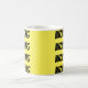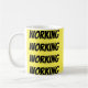 Workaholische Tasse für die Arbeiterbiene. Schwarze Buchstaben auf Gelb.