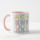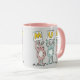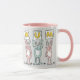 Spaß Tasse für Mama. Spaß Kaninchen Design Rosa und Weiße Tasse mit der Darstellung der Kaninchen in Rosa und Blau. Die Kaninchen halten Karten hoch, um das Wort MUM zu buchstabieren.