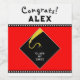 Kreative Abschluss-Geschenketiketten und Party-Dekoration mit klassischem Schwarz Graduierdeckel und Goldkleckse-Design auf rotem Hintergrund. So personalisieren Sie Text bearbeiten, um Name und Senior Class Year hinzuzufügen.