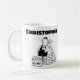 Erstellt Tasse mit Namen. Personalisiertes Geschenk für einen Baumeister. Die Tasse eines Bauers. Geben Sie Ihren Namen ein. Bild und Name werden auf beiden Seiten angezeigt. Die Abbildung auf dieser Tasse zeigt einen Builder im Stil eines Cartoon.