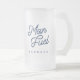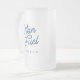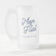 Eine perfekte Tasse für das Lieblingsgetränk Ihres Mannes. Die mattierte Glasbierer-Tasse zeigt "Man Fuel" in einer stilvollen, kühlen und rustikalen marineblauen Schriftzeichen-Typografie. Personalisieren Sie Ihre Daten mit dem Namen Ihres Typ.
