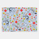 Creative nurse giftwrap patterns featuring unique medical-themed nursing supplies on blue, white and pink backgrounds.