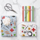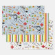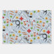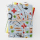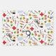 Kreative Pflegemuster mit einzigartigen medizinischen Pflegeprodukten auf blau, weiß und gestreiftem Hintergrund.