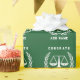 Einzigartiger Jurastudio-Abschluss oder Anwalt Glückwunsch Geschenkverpackung Design auf grünem Hintergrund. So personalisieren Sie Text bearbeiten, um seinen Namen hinzuzufügen.