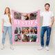 Personalisierte Freundschaft Fleecy Decke mit einem mädchenhaften rosa Hintergrund, der in jede Farbe verändert werden kann, 9 Fotos von Ihnen und Ihre bestie, und ein niedliches beste Freunde Zitat.