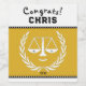 Creative Law School Abschluss Geschenk oder Flasche Etiketten und Anwalt Party Dekor mit Waagen der Gerechtigkeit personifiziert auf Gold Hintergrund. So personalisieren Sie Text bearbeiten, um Namen und Jahr hinzuzufügen.