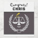 Creative Law School Abschluss Geschenk oder Flasche Etiketten und Anwalt Party Dekor mit Waage der Justiz personifiziert und grad Mütze auf grauem Hintergrund. So personalisieren Sie Text bearbeiten, um Namen und Jahr hinzuzufügen.