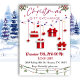 Die Einladung zum Geschenkgutwechsel in Rot und Weiß ist einfach mit einer Touch von Eleganz und roten Geschenken, die an Weihnachtsbeleuchtung hängen.