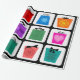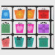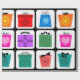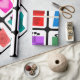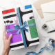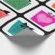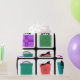 Farbenfrohe Geschenkboxen mit schwarzen Quadraten auf weißem Hintergrund