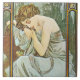 Alphonse Muchas Repos de la Nuit (nächtlicher Schlummer) 1899. Eine klassische Schönheit des vergoldeten Alters fing an der Erholung, ihr reizendes Gesicht, das würdevoll auf ihrer Hand liegt. Flüssige Linien und hoch entwickelte Palette der weichen Grüntöne.
