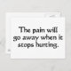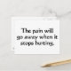 Der Schmerz wird verschwinden, wenn es aufhört zu tun! Dieses witzige Design, das auf T - Shirt, Hunden, Hüten, Taschen, Tasse und anderen Geschenkideen erhältlich ist, wird Operation-Patienten, Krankenschwestern, Physiotherapeuten, Ärzten oder jedem, der hilft, sich von Krankheit und Verletzung zu erholen, sicher zum Lachen bringen.
