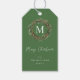 Senden Sie Ihre Geschenke in Stil und Feiertagssjubiläum mit Ihrem Green Wreath Monogram Frohe Weihnachtsgeschenke Tags.