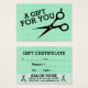Ein Retro-Geschenkgutschein, modern und unterhaltsam, mit dem Wort "Geschenkgutschein" in einem großen, lauten Druck mit Schere/Schere auf einem minzgrünen Punkt Hintergrund. Perfekt für Haarstylisten, Frisöre, Friseure, Kosmetologen, Kosmetologie, Salons, Wellness-Center und mehr!