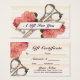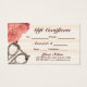 Ein wunderschönes, Vintages Geschenkgutschein mit Blumengeschenk mit rosafarbenen Blume mit antiken Scheren auf pfirsichfarbenem StammesHintergrund mit einem Banner-Sprichwort "Friseurin". Perfekt für Haarstylisten, Friseure, Friseure, Kosmetologen, Kosmetologen, Salons und mehr!