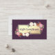 Chic Modern Lila und Gold Damask handgefertigte Papier Blumensalon oder Boutique Geschenkgutschein Business Card Vorlage. Vorlage für ein elegantes Salon oder eine Boutique-Geschenkgutachten. Mit einem botanischen Weiß- und Golddesign mit farbenfrohen Blume. Ideal für einen Beauty Salon, Nail Bar und verwandte Berufe.