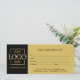 Modernes, minimalistisches Geschenkgutschein mit eigenem Logo, Firmenname und Botschaft in einem sauberen Schwarz-Gold-Design. Ideal für kleine Geschäftsinhaber, Salons, Wellness-Center, Boutiquen oder Firmengeschenke. Personalisieren Sie mit Ihrem eigenen Text und Ihrem Firmenlogo. Eine einfache, berufliche Möglichkeit, Geschenke, Werbeaktionen oder Kredite zu speichern. Elegant und nach Maß gefertigt, um Ihrem einzigartigen Markenstil gerecht zu werden. Ideal für Ferien, Geburtstage, Dankesgeschenke oder besondere Veranstaltungen.