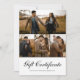 Unsere moderne Geschenkgutkarte zeichnet sich durch ein minimalistisches Design und eine Collage aus Foto aus. Fügen Sie Ihre Kontakt- und Geschäftsdaten hinzu, wie z.B. Website, Telefonnummer und E-Mail. Fotos von Prostooleh / Freepik.