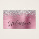 Modernes, gürtelfreundliches Design für Ihre kleinen Geschenkgutscheine in Visitenkartengröße. Alle Texte und Zeilen können individuell angepasst werden, wenn Sie andere Informationen benötigen, während Sie Ihre eigenen kleinen Geschenkkarten erstellen. Wenn Sie mehr als zwei Zeilen für Ihre Kontaktinformationen benötigen, gibt es viel Platz, um die verschiedenen Elemente zu verschieben. Die Imitate funkelnd silber Glitzer gegen ein Imitat hellrosa gebürstete metallische Folie Digital-Kunst Grafik Bilder in diesem Design-Druck wie ein Foto.