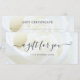 Einfache und elegante Drehbuch weiße Rose Geschenkgutschein. Dieses elegante Script-Geschenkgutachten passt perfekt in den Standard #10-Business-Umschlag. Ideal für Ihre Marke und Ihr Geschäft.