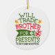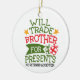 Feiern Sie den Urlaub mit diesem lustigen, niedlichen und schönen Foto Weihnachtsschmuck mit "Will Trade Brother For Presents, No Return Accepted". Auf der Rückseite, oben und unten im Foto, finden Sie die anpassbaren Grußbotschaften und Namen in der modernen Schrift Typografie. Wünschen Sie allen ein frohes Weihnachtsfest und ein glückliches Neues Jahr!