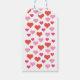 Hübsche rote und rosa Herzen auf einem Geschenkschild.