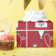 Kreative Medizin-Abschluss Geschenkpackung und Party-Dekoration mit roten Klinikschalen, Stethoskop und lustigen Schweizer Armeemesser. Bearbeiten Sie Text, um den Namen des Arztes hinzuzufügen oder anderweitig anzupassen.