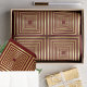 Luxuriöses, elegantes und glamouröses bordeauxrotes und goldenes Papiertaschentuch mit glänzenden goldenen Quadraten, die eng verbunden sind, um eine faszinierende 3D-Illusion zu erzeugen.
