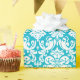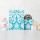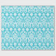 Türkisfarbenes und weißes Vintages viktorianisches Damastappapier mit Blumenbezug.