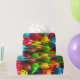 Eine farbenfrohe, abstrakte Geschenkpapier-Illustration zum Schmelzen von M&M-Bonbons.