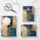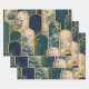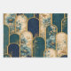 Verpacken Sie Ihre Geschenke stilvoll mit diesem luxuriösen Geschenkpapier, das ein atemberaubendes marokkanisches Bogen-Design mit eleganten floralen Details in reichen Teal-, Gold- und Navy-Tönen kombiniert.