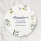 Stilvolle Geschenkmarke mit einem weichen, minimalistischen Muster von Blätter und Ästen. Passen Sie die Vorderseite mit Namen, Datum und "Erste Kommunion" an, sowie eine bearbeitbare Danksagung auf der Rückseite perfekt für Favoriten, Geschenktaschen oder elegante Event-Akzente.