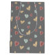 Geschenktasche mit Aquarellmuster von Night Sky Paperie. Dunkelgraue Tasche mit Herz auf Vorder- und Beutel und leere graue gefaltete Seiten. Mehrere Größen und zwei Oberflächen (matt oder glänzend) zur Auswahl