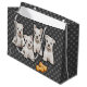 Auffallende grafische Grafik von 4 niedlichen Terrierwelpen ist auf einer Strecke der Haushaltswaren verfügbar. Mit einem kundengerechten Tupfenmusterhintergrund macht sie eine attraktive Geschenktasche für einen Haustierliebhaber oder zu geben einem Haustierliebhaber.