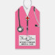 Kreative Pflege Dank Geschenketiketten mit rosa Krankenhauspepps und Stethoskop. Bearbeiten Sie den Text, um ihn für Ihre Krankenschwester, Ihren Arzt oder Ihre Ärztin anzupassen.