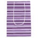 Geschenktasche aus Papier in lila Streifen gedruckt. Passen Sie dieses Objekt an oder kaufen Sie, wie es ist.