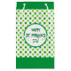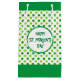 Das Glück der Iren ist bei Ihnen, mit diesem grünen Kleeblatt Muster. Auf dem oberen und unteren Teil dieses Designs ist ein dunkelgrünes Band. Der Text lautet "Happy St. Patrick's Day". Text kann angepasst werden.