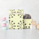 Die Drucke in einem Kreis werden in drei konzentrische Kreise von allmählich kleineren Drucke repliziert. Das Drei-Kreise-Muster ähnelt Schneeflocken - schwarze Drucke auf blassgelbem Hintergrund.