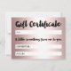 Eine moderne, stilvolle Geschenkgutschrift Schönheitstechniker Visitenkarte mit moderner Handschrift-Stil Pinsel Typografie in Imitaten Rose Goldfolie auf einem modischen und eleganten Rose goldenen Hintergrund metallisch. Wenn Sie eine Anpassung benötigen, zögern Sie nicht, mich zu kontaktieren