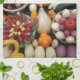Sortiertes Gemüse, Kürbis, Kartoffel, Rettiche und Zwiebel. Heller bunter Entwurf.
