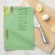 Geschirrtuch mit lächelnden Rosenkohlcharakteren. Die Wörter können besonders angefertigt werden.