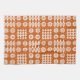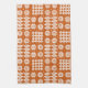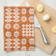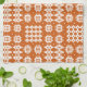 Ein schickes Tee-Tuch oder ein Geschirrtuch, mit einem Muster der traditionellen Waliser-Tapisseriemotive im Weiß auf einem Ziegelstein-Rothintergrund.
