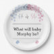 Er oder sie, was wird das Baby sein? Blauer und rosa Blumenspray oben mit passenden Hintern unten. Alle persönlichen lass können bearbeitet werden. Grafiken können nicht geändert werden. Geschlecht offenbart Papier-TELLER
